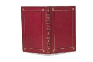 Reliure de plein maroquin rouge avec décor à l'imitation d'un décor à la Duseuil, double encadrement sur les plats composé de filets à froid et dorés, fleurons dorés aux angles de l'encadrement intérieur, filet doré sur les coupes, dos à 5 nerfs fleuronné, filets dorés sur les nerfs, erreurs au titre doré : «Navis stultifere collect. J. Bartis. 1595», tranches dorées (reliure anglaise XIXe siècle, signée «F. Bedford»).