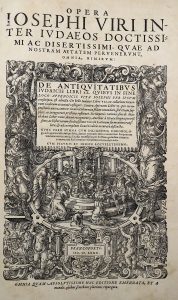 JOSEPHUS (Flavius). Opera Josephi viri inter judaeos doctissimi ac disertissimi, quae ad nostram aetatem pervenerunt, omnia, nimirum : de antiquitatibus judaicis libri XX. Francfort, Sigismond Feyrabend 1580. In-folio (370 x 218 mm), 4 ff. nch, 934...