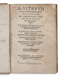 VITRUVE (M. Vitruvius Pollio). M. Vitruvii viri suae professionis peritissimi, de architectura libri decem ad Augustum caesarem accuratiss. conscripti & nunc primum in Germania qua potuit diligentia excusi, atque hinc inde schematibus non iniucundis...