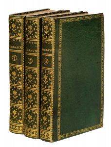 MARMONTEL (Jean-François). Contes moraux. Londres [Paris, Cazin], 1780. 3 vol. in-32, maroquin vert de l'époque, dentelle dorée en encadrement sur les plats, dos lisses ornés de motifs dorés, roulette sur les coupes.