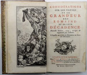 MONTESQUIEU - Considérations sur les causes de la grandeur des Romains, et de leur décadence. Nouvelle édition, revue, corrigée & augmentée par l'Auteur, à laquelle on a joint un Dialogue de Sylla et d'Eucrate. Paris, Huart & Moreau fils,...