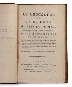 [SAINT MARTIN (Louis Claude de)]. Le Crocodile, ou la guerre du bien et du mal, arrivée sous le règne de Louis XV ; poème épiquo - magique en 102 chants, dans lequel il y a de longs voyages, sans accidens (sic) qui soient mortels ; un peu...
