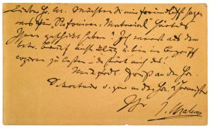 BRAHMS (Johannes). 1833-1897. Compositeur allemand. C.A.S. Vienne, 15 décembre 1883. 1 pp. in-12 oblong sur carte de correspondance, adresse au verso ; en allemand.