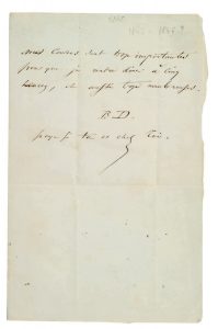 BAUDELAIRE (Charles). 1821-1867. Écrivain poète. B.A.S. «B.D.» [pour Baudelaire-Dufaÿs] à sa mère. S.l.n.d. (Circa 1845). Demi-page sur double feuillet in-8.