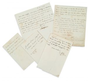 BRILLAT-SAVARIN (Jean-Anthelme). 1755-1826. Magistrat, fameux gastronome. 2 L.A.S. et 3 B.A. à son cher Pagès. S.l.n.d. (1807). 2 pp. sur bi-feuillet in-4 et 3 pp. in-12 ; adresses au verso ; traces de moisissure sur une des lettres