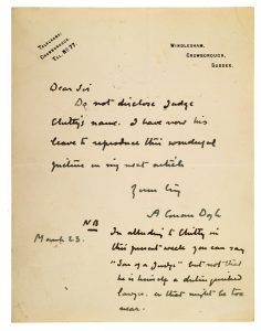 Doyle demande à son correspondant de ne pas divulguer le nom du juge Chitty ; il a maintenant l'autorisation de reproduire cette image dans son prochain article.