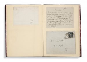 HUYSMANS (Joris-Karl). 1848-1907. Ecrivain. Correspondance dont à Jules Bois. 1875-1903. 14 l.a.s. ou c.a.s. avec 2 env., 1 photo. (tirage argentique) et 4 lettres, montées sur onglet ou à claire-voie, relié demi-maroquin bordeaux à coins,...