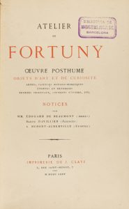 1875. LIBRO : (ARTE). ATELIER DE FORTUNY. OEUVRE POSTHUME. OBJETS D´ART ET DE CURIOSITE... Paris : Imp. Claye, 1875. 4º. 4 h. + 146 p. + 1 h. + 3 lám.