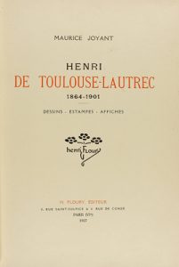 1927. LIBRO : (ARTE). JOYANT, MAURICE: HENRY DE TOULOUSE-LAUTREC 1864-1901. DESSINS-ESTAMPES-AFFICHES. Paris : H. Floury, 1927. 4º. 3 h. + 281 p. + 1 h. + 45 lám.