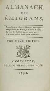 1792. LIBRO : (BIBLIOFILIA). ALMANACH DES ÉMIGRANS. Coblentz : imp. des Princes, 1792. 8º menor. 10 + XXIV + 136 p.