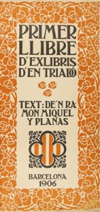 1906. LIBRO : (BIBLIOFILIA). MIQUEL Y PLANAS, RAMON: PRIMER LLIBRE D´Ex-libris D´EN TRIADÓ. Barcelona : Imp. Elzeviriana, 1906. Fol. alargado. 36 hojas.