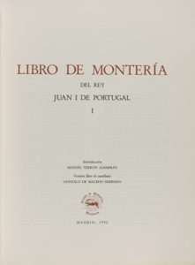 1990. LIBRO : (CAZA-BIBLIOFILIA). LIBRO DE MONTERIA DEL REY JUAN I DE PORTUGAL. Introducción Manuel Terron Albarran. Versión libre al castellano Gonzalo de Macedo Sherman. Madrid : Circulo de Bibliofilia Venatoria, 2008. 2 vol. en 4º mayor.