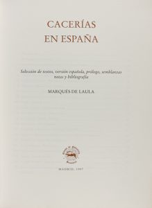1997. LIBRO : (CAZA-BIBLIOFILIA). MARQUES DE LAULA: CACERIAS EN ESPAÑA. Selección de textos, versión española, prólogo, semblanzas, notas y bibliografía por... Madrid : Círculo de Bibliofilia Venatoria, 1997. 4º mayor. 369 p. + 2 h.