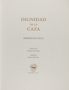 2010. LIBRO : (CAZA-BIBLIOFILIA). LAULA, MARQUES DE: DIGNIDAD DE LA CAZA. Madrid : Círculo de Bibliofilia Venatoria, 2010. 4º mayor. 160 p. + 6 h.