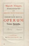 Estamos ante un volumen que recoge todas la obras del anatomista boloñés Macello Malpighi, publicadas por la Royal Society de Londres, de la cual fue miembro.