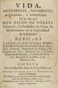1743. LIBRO : (BIOGRAFÍA-MATEMÁTICAS). TORRES VILLARROEL, DIEGO DE: VIDA, ASCENDENCIA, NACIMIENTO, CRIZANZA, Y AVENTURAS DE EL DOCTOR DON... CATHEDRATICO DE PRIMA DE MATHEMATICAS EN LA UNIVERSIDAD DE SALAMANCA. Valencia : Imp. Geronimo...