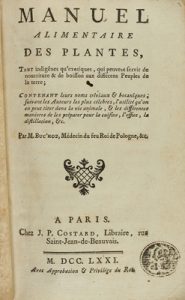 1771. LIBRO : (BOTÁNICA-ALIMENTACIÓN). BUC´HOZ, PIERRE JOSEPH. : MANUEL ALIMENTAIRE DES PLANTES ... Paris : Libr. J. P. Costard, 1771. 8º menor. VIII + 663 p. + 1 h.
