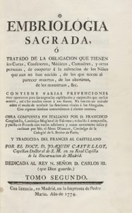 1774. LIBRO : (CIENCIAS-OBSTETRICIA). CANGIAMILA, FRANCISCO: EMBRIOLOGIA SAGRADA, Ó TRATADO DE LA OBLIGACION QUE TIENEN LOS CURAS, CONFESORES, MÉDICOS, COMADRES, Y OTRAS PERSONAS, DE COOPERAR Á LA SALVACION DE LOS NIÑOS QUE AUN NO HAN...