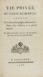 1788. LIBRO : (CIENCIAS-BIOGRAFÍA). AUDE, M. LE CHEVALIER: VIE PRIVÉE DU COMTE DE BUFFON, SUIVIE D´UN RECUEIL DE POÉSIES DONT QUELQUES PIECES SONT RELATIVES À CE GRAN D HOMME. Lausanne : s. imp., 1788. 8º mayor. 141 p.