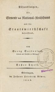 1806. LIBRO : (ECONOMÍA). SARTORIUS, GEORG FRIEDRICH: ABHANDLUGNGEN, DIE ELEMENTE DES NATIONAL. REICHTHUMS UND DIE STAATSWIRTHSCHAFT BETREFFEND. Göttingen : J.F.Röwer, 1806. 8º. VIII+ 519 p.