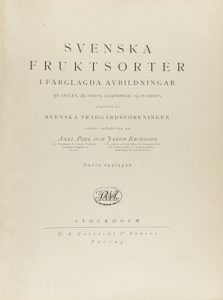 Conjunto de bellísimas lám. cromolitográficas de frutos autóctonos suecos, de una factura impecable y gran realismo, compuesto de 50 variedades de manzanas, 25 de peras, 10 de cerezas y 15 de ciruelas suecas.