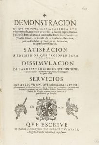 1679. FOLLETO : (BARCELONA). FERRER Y VINYALS, GERÓNIMO DE: DEMONSTRACION DE QUE UN PAPEL QUE HA SALIDO A LUZ, Y SU CONTENIDO, CON TITULO DE CORDIAL, Y HUMIL REPRESENTACION, Y DISCURSO DEMONSTRATIVO, A LOS MUY ILUSTRES SEÑORES CONCELLERES, Y...