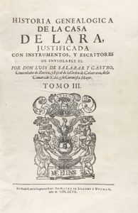 1697. LIBRO : (GENEALOGÍA-HERÁLDICA). SALAZAR Y CASTRO, LUIS DE: HISTORIA GENEALOGICA DE LA CASA DE LARA, JUSTIFICADA CON INSTRUMENTOS, Y ESCRITORES DE INVIOLABLE FE. TOMO III. Madrid : Imp. Real por Mateo de Llanos y Guzman, 1697. Folio....