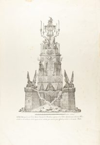 S. XVIII. GRABADO : LOTE DE 4 GRABADOS. Dos grabados de momumentos funerarios, uno grabado por Carrera y litografiado por Gaspar a los bilbaínos sacrificados en aras de la patria ; el otro dibujado por Paul Decker y grabado por August Corvinus.