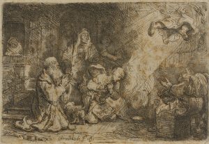 S XIX. GRABADO : REMBRANDT: EL ÁNGEL DEJANDO A TOBÍAS Y SU FAMILIA. 10,5 X 16 cm. Aguafuerte firmado y fechado en plancha ´Rembrandt 1641´ .