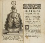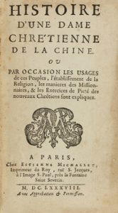 1688. LIBRO : (HISTORIA-ANTROPOLOGÍA). [COUPLET, PHILIPPE: ]. HISTOIRE D´UNE DAME CHRETIENNE DE LA CHINE OU PAR OCCASION LES USAGES DE CES PEUPLES, l´établissement de la religion... Paris : Chez Estienne Michallet, 1688. 8º menor.