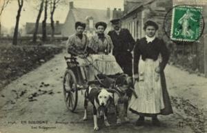 Loiret - Sologne 4 cpa attelages de chiens dont laitière, ramasseur de bois mort