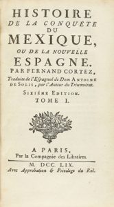 1759. LIBRO : (HISTORIA-MEXICO). CORTEZ, FERNAND: HISTOIRE DE LA CONQUÊTE DU MEXIQUE, OU DE LA NOUVELLE ESPAGNE. Paris : Par la Compagnie des Libraires, 1759. 2 vol. 8º menor.