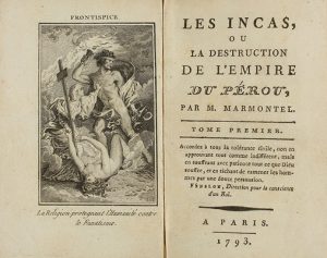 1793. LIBRO : (HISTORIA-PERÚ). MARMONTEL, M. : LES INCAS OU LA DESTRUCTION DE L´EMPIRE DU PÉROU. Paris : s. imp., 1793. 3 vol. en 12º.