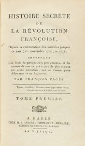1797. LIBRO : (REVOLUCION FRANCESA). PAGÈS, FRANÇOIS: HISTOIRE SECRÈTE DE LA RÉVOLUTION FRANÇOISE. Paris : Imp. H. J. Jansen, 1797. 3 vol. en 8º mayor.