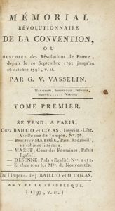 1797. LIBRO : (REVOLUCIÓN FRANCESA). VASSELIN, G. V. : MÉMORIAL RÉVOLUTIONNAIRE DE LA CONVENTION, OU HISTOIRE DES RÈVOLUTIONS DE FRANCE, DEPUIS LE 20 SEPTEMBRE 1792 JUSQU´AU 26 OCTOBRE 1795. Paris : Imp. J. Baillo et D. Colas, 1797. 2 vol....