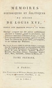 1801. LIBRO : (HISTORIA FRANCIA). SOULAVIE, JEAN-LOUIS: MÉMOIRES HISTORIQUES ET POLITIQUES DU RÈGNE DE LOUIS XVI, DEPUIS SON MARIAGE JUSQU´A SA MORT. Paris : Chez Treuttel et Würtz, 1801. 6 vol. 8º mayor.