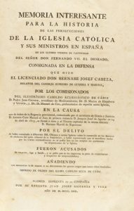 1814. LIBRO : (HISTORIA-RELIGIÓN). CABEZA, BERNABE JOSEF: MEMORIA INTERESANTE PARA LA HISTORIA DE LAS PERSECUCIONES DE LA IGLESIA CATÓLICA Y SUS MINISTROS EN ESPAÑA EN LOS ULTIMOS TIEMPOS DE CAUTIVIDAD DEL SEÑOR DON FERNANDO VII EL DESEADO,...