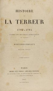 1863. LIBRO : (HISTORIA). MORTIMER-TERNAUX: HISTOIRE DE LA TERREUR 1792-1794. Paris : Michel Lévy frères, 1863 y 1881. 8 vol. en 8 º mayor. 444 p. + 514 p. + 647 p. + 582 p. +573 p. + 616 p. + 579 p. +624 p. 8 vol. enc. en media piel.