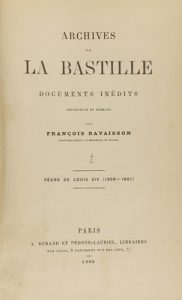 1866. LIBRO : (REVOLUCIÓN FRANCESA). RAVAISSON, FRANÇOIS: ARCHIVES DE LA BASTILLE DOCUMENTS INÉDITS. RECUEILLIS ET PUBLIÉS PAR... Paris : A. Durand et Pedone-Lauriel, 1866. 6 vol. en 4º menor.