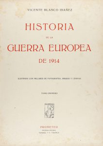 1920-1930 ca. LIBRO : (HISTORIA-EUROPA). BLASCO IBÁÑEZ, VICENTE: HISTORIA DE LA GUERRA EUROPEA DE 1914. Valencia : Ed. Prometeo, s.a. 9 vol. en fol. menor.