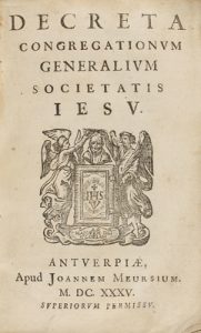 1635. LIBRO : (HUMANIDADES). DECRETA CONGREGATIONUM GENERALIUM SOCIETATIS IESU. Antuwepiae : Apud Jpannem Meursium, 1635. 8º menor. 474 p. + 15 h.
