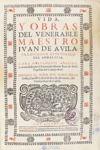 1674. LIBRO : (HUMANIDADES). RUIZ DE MESA, MARTIN: VIDA, Y OBRAS DEL VENERABLE MAESTRO IUAN DE AVILA, PREDICADOR APOSTOLICO DE ANDALUCIA. Madrid : Imp. Antonio Gonçalez de Reyes, 1674. 4º mayor. 4 h. + 583 p. + 5 h.