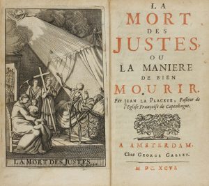 1696. LIBRO : (TANATOLOGÍA). PLACETE, JEAN LA: LA MORT DES JUSTES OU LA MANIERE DE BIEN MOURIR. Amsterdam : Chez George Gallet, 1696. 8º menor. 10 h. + 532 p.