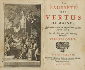 1717. LIBRO : (LITERATURA). ESPRIT: LA FAUSSETÉ DES VERTUS HUMAINES. Amsterdam : Etienne Roger, 1717. 2 vol. 8º menor. I : XX + 299 p. II : 276 p. + 2 h.
