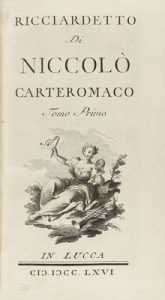 1766. LIBRO : (SÁTIRA). CARTEROMACO, NICCOLÒ: RICCIARDETTO ... TOMO PRIMO. In Lucca : S. Imp., 1766. 8º.