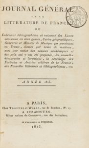 1815-1827. LIBRO : (LOTE DE CONJUNTO-LITERATURA FRANCESA). JOURNAL GÉNERAL DE LA LITTÉRATURE DE FRANCE OU ... Paris/ Strasbourg : Chez Treuttel et Würtz/ Même maison de Commerce, 1815-1821. 5 vol. en 8º mayor. 360-380 p. c/u. aprox.
