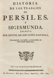 1768. LIBRO : (CERVANTINA). CERVANTES SAAVEDRA, MIGUEL: HISTORIA DE LOS TRABAJOS DE PERSILES, Y SIGISMUNDA. Barcelona : Imp. Juan Nadal, 1768. 8º mayor. 2 h.+ 352 p.+ 2 h.