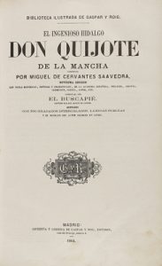 1864. LIBRO : (CERVANTINA). CERVANTES SAAVEDRA, MIGUEL DE: EL INGENIOSO HIDALGO DON QUIJOTE DE LA MANCHA... AUMENTADA CON EL BUSCAPIE. Anotado por Adolfo de Castro. Madrid : Imp. y Libr. Gaspar y Roig, 1864. 4º. 540 p. + 1 h.
