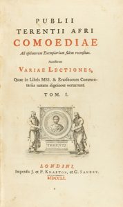 1751. LIBRO : (LITERATURA CLÁSICA). TERENTII AFRI, PUBLII: COMOEDIAE. Londini : Imp. J. et P. Knapton, 1751. 2 vol. en 4º menor.