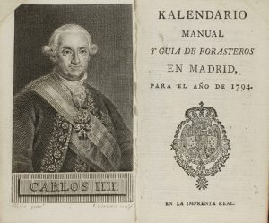 Edición original de este Calendario-Guia de forasteros en la que aparece el retrato de Carlos III realizado por Goya.